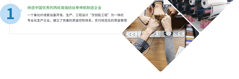 公司致力于制造質(zhì)量上乘的產(chǎn)品,優(yōu)質(zhì)的售后服務(wù)。產(chǎn)品為國(guó)內(nèi)眾多企業(yè)服務(wù),并遠(yuǎn)銷(xiāo)東南亞、東歐及南美。我們期待與海內(nèi)外客戶(hù)廣泛合作,共創(chuàng)化纖工程新輝煌。