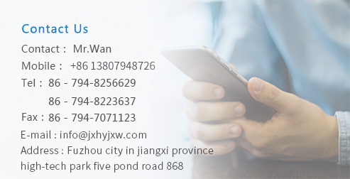 Address:No. 868 five Tong Road High-tech park, Fuzhou City, Jiangxi Provinc Tel:0086-0794-8256629 Email:info@jxhyjxw.com